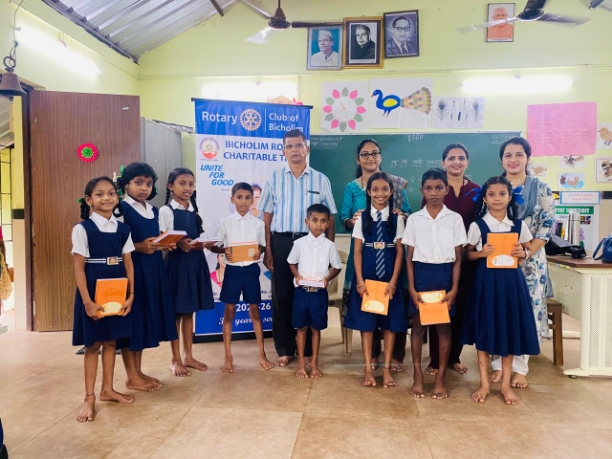 Understanding the need to basic education, RC Bicholim donated note. . .